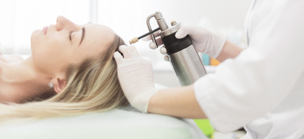 Использование азота показало высокие результаты в лечении выпадения волос. Криомассаж эффективно раскрывает калиевые каналы, что способствует улучшению местной микроциркуляции крови на поверхности кожи головы, это в свою очередь увеличивает поступление полезных веществ к волосяным фолликулам, что приводит к активации фазы роста волос.